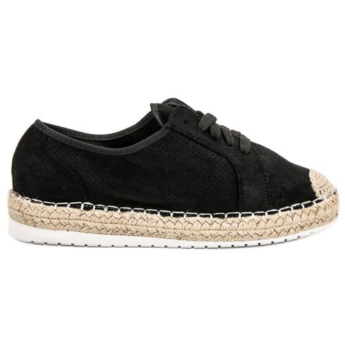 Sznurowane espadryle Ideal Shoes są stylowym uzupełnieniem każdej stylizacji. Mają czarny kolor, płaską podeszwę z bieżnikiem i okrągły nosek. Sprawdzą się w każdym okresie, nawet zimowym i jesiennym. Są lekkie, wygodne i stylowe - to nowoczesne buty doskonałe dla każdej kobiety ceniącej sportowy styl i wygodę.
