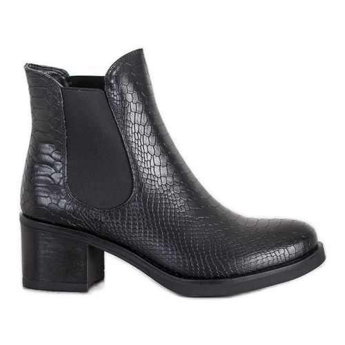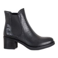 Zgrabne sztyblety firmy Seastar w kolorze czarnym ze wzorem skóry węża. Wierzchnią część botków tworzy skóra ekologiczna, wnętrze wyścielone miłą w dotyku tkaniną. Buty osadzone na obcasie wysokości 6 cm. Solidna, wytrzymała podeszwa. Obowiązkowy fason każdej eleganckiej kobiety, który nigdy nie wychodzi z mody.