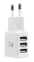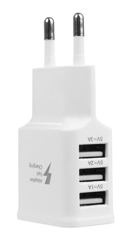 Ładowarka pozwala na ładowanie trzech urządzeń jednocześnie. Posiada zabezpieczenia przeciwprzepięciowe, i przeciw-napięciowe. Jej zastosowanie jest uniwersalne, - naładuje każde urządzenie ładowane kablem USB. Praktyczna forma, pozwala podłączyć ją do gniazdka z uziemieniem. Duża moc, zależna od wyjścia USB daje możliwość szybkiego ładowania. Szukasz pewnej, praktycznej i uniwersalnej ładowarki? - Dobrze trafiłeś