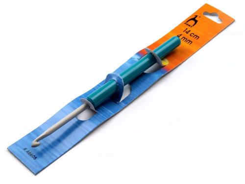 Szydełko wykonane jest ze stopu aluminium i wyposażone w uchwyt wykonany z plastiku.
