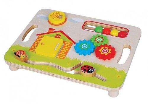 Tablica aktywności dla malucha będzie stanowić wspaniałą zabawkę dla dzieci, które uwielbiają odkrywać otaczający je świat. Umożliwia ona dzieciom ćwiczenie małych paluszków, poprzez takie czynności jak: przesuwanie ślimaczka oraz biedronki po specjalnym torze, wprowadzanie w ruch kół zębatych, kręcenie kółkiem, przemieszczanie koralików. Zabawka jest umieszczona na stabilnych nóżkach, łatwo ją przenosić. Zapakowana w kolorowe i estetyczne pudełeczko. Wymiary: 22 x 29 x 4cm Wiek : 6m+ Referencja: L10088 Deklaracja zgodności CE