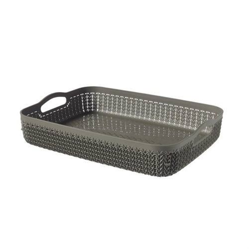 Koszyk o kwadratowym kształcie marki CURVER idealnie sprawdzi się w każdym domu oraz biurze. Dzięki niemu z łatwością uporządkujesz wszelkie niewielkie akcesoria i przybory codziennego użytku. Wysokiej jakości materiał z jakiego wykonano pojemnik jest stylizowany na rattanową plecionkę, dzięki czemu całość prezentuje się niezwykle stylowo i perfekcyjnie w każdym, nawet w najmodniejszym wnętrzu. Optymalne wymiary pozwalające na przechowanie przeróżnych dokumentów pomogą odpowiednio zagospodarować przestrzeń na biurowym stole. Dzięki wykorzystaniu materiału bezpiecznego w kontakcie z żywnością pojemnik odnajdzie swoje zastosowanie również w kuchni.