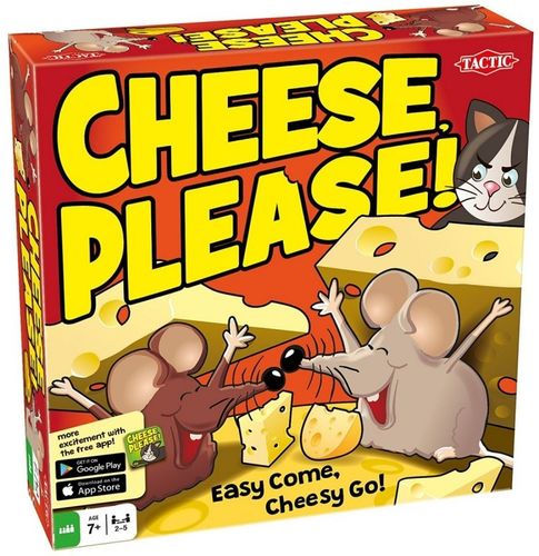 Cheese PleaseMyszy biegają po wielkim bloku sera. Zadaniem gracza jest zakrycie ich kawałkami sera, nim złapie je kot. Należy się jednak upewnić, że cała mysz jest zakryta!- Śliczne, transparentne serowe karty z plastiku.- Plansza do gry może być w różny sposób kształtowana!- Wciągająca gra rozwijająca umiejętność myślenia przestrzennego!Wiekod 6 lat