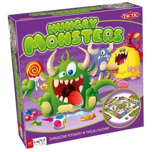 Hungry Monsters to gra dla łakomczuchów w każdym wieku! Potwory są głodne, a głód ten zaspokoić nie jest łatwo. Krążą więc po kuchni w poszukiwaniu pysznych kąsków. Zadaniem każdego zawodnika jest zapełnienie paszczy jednego potwora. Potwory przemieszczają się po planszy, a gracze wykonują zadania, dzięki którym zdobywają krążki z jedzeniem dla swoich podopiecznych... Gra przeznaczona dla 2 do 4 osób w wieku od 4 do 10 lat.
