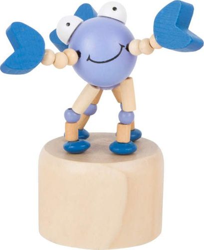 Tańcząca figurka homar to atrakcyjna zabawka dla najmłodszych. Jest wykonana z drewna, dzięki czemu jest wytrzymała i pokryta kolorową farbą, bezpieczną i antyalergiczną. Kolory przyciągają uwagę dziecka i zachęcają je do zabawy, poruszania zabawką, żeby tańczyła na sprężystych nóżkach, na których umieszczone jest zwierzątko.