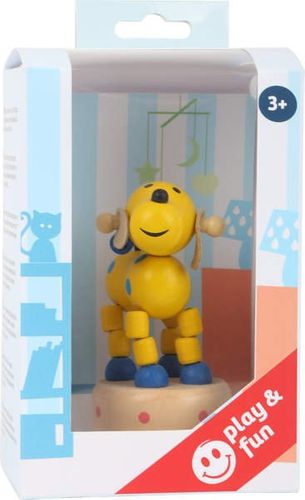 Tańcząca figurka piesek to atrakcyjna zabawka dla najmłodszych. Jest wykonana z drewna, dzięki czemu jest wytrzymała i pokryta kolorową farbą, bezpieczną i antyalergiczną. Kolory przyciągają uwagę dziecka i zachęcają je do zabawy, poruszania zabawką, żeby tańczyła na nóżkach, na których umieszczone jest zwierzątko.