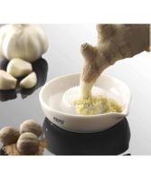 Ceramiczna tarka z niezwykle twardą i ostrą powłoką dla perfekcyjnego tarkowania. Zioła i warzywa takie jak imbir, gałka muszkatołowa, czosnek, jabłka, marchewka czy też rzodkiewka nie stanowią dla niej większego problemu. Dzięki silikonowym brzegom nie ślizga się podczas użytkowania.