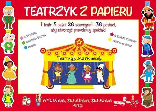 Teatrzyk z papieru to książka, która w ciekawy i kreatywny sposób łączy dziecięcą miłość do baśni z fascynacją teatrem i odgrywaniem ról, będącą udziałem większości dzieci. Znajdują się więc tutaj teksty ponadczasowych, popularnych baśni, jak Księżniczka na ziarnku grochu, Czerwony Kapturek, Królewna Śnieżka i siedmiu krasnoludków czy Kopciuszek, a towarzyszą im starannie przygotowane elementy scenograficzne, pasujące do każdej baśni i umożliwiające odegranie ich na scenie teatru również znajdującego się w książce i gotowego do wycięcia. Teksty rozpisane są na krótsze fragmenty, co ułatwia zorientowanie się w konieczności zmiany scenografii czy wprowadzenia nowych postaci. Wystarczą nożyczki, klej i zręczne ręce, aby doskonale się bawić, rozwijać kreatywność i zdolności manualne oraz poprzez zabawę uczyć się reguł funkcjonowania teatru. Na koniec można zaprosić na przedstawienie rodziców oraz przyjaciół i cieszyć się blaskiem chwały genialnego reżysera i aktora w jednym!