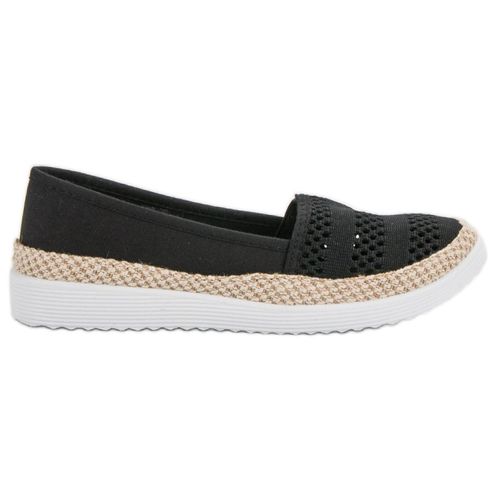 Espadryle to absolutny must-have sezonu wiosenno-letniego. Gruba biała podeszwa ze sznurkowym wykończeniem stanowi interesujące połączenie stylu sportowego oraz wakacyjnej elegancji. Cholewka wykonana z przewiewnej ażurowej tkaniny w kolorze czarnym zapewnia komfort oraz optymalne dopasowanie do stopy. Buty sprawdzą się podczas codziennych wyjść na miasto.