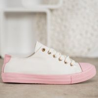 SHELOVET Trampki Obuwie damskie Kobiety Białe Różowe Tkanina