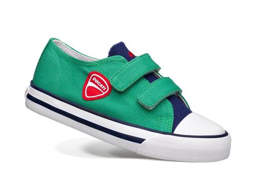 Klasyczne trampki dziecięce. Zielona, niska cholewka stanowi świetne wsparcie bez utraty mobilności. Podwójne zapięcie na rzep umożliwia ich łatwe ściąganie. Podeszwa zewnętrza z odpornej na ścieranie gumy dla lepszej przyczepności. Obuwie idealne zarówno dla dziewczynki jak i chłopca.