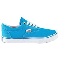 Niebieskie tenisówki New Age to wyjątkowo modne damskie buty, które wyróżniają się niecodzienną stylizacją. Obuwie jest wykonane z materiału tekstylnego, dzięki czemu gwarantuje komfort użytkowania. Buty posiadają białą podeszwę i sznurówki, które wyróżniają się spośród niebieskiej barwy reszty elementów.