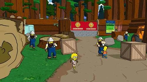 Zarówno telewizyjny pierwowzór, jak i jego kinowa adaptacja w ironiczny sposób przedstawia losy amerykańskiej rodziny z małego miasteczka (Springfield). Ojciec (Homer) jest pracownikiem elektrowni, a matka (Marge) to typowa gospodyni domowa. Jest też trójka niegrzecznych dzieci (Bart, Lisa i Maggie) oraz zwierzątka – kot (Snowball) i pies (Santa's Little Helper). Niezwykle popularny serial (łącznie ponad czterysta odcinków, emitowanych od 1987 roku) wyróżnia się charakterystycznym wyglądem bohaterów i mnóstwem humoru. Stworzona przez EA gra to ciekawe połączenie dynamicznej akcji i emocjonującej przygody. Wcielając się w jednego z bohaterów znanych z serialu, pokonujemy kolejne etapy (łącznie szesnaście leveli – wszystkie nawiązują do znanych produkcji ze świata gier i są ich parodią), zwiedzamy Springfield i inne krainy, skaczemy po platformach, rozwiązujemy proste zagadki, walczymy z przeciwnikami i rozmawiamy z napotkanymi osobami. Co ciekawe, choć w danej chwili możemy kontrolować ruchy tylko jednej postaci, w każdym momencie da się zmienić bohatera i wykorzystać innego, podróżującego wraz z nim, by przejść dalej, używając jego specjalnych zdolności (np. Bart zmienia się w karykaturę Batmana i może latać, a Homer przeistacza się w wielką kulę, taranując wszystko na swej drodze). W trybie multiplayer każdy z graczy kontroluje jedną z postaci, a sukces odnosi się dzięki współpracy.