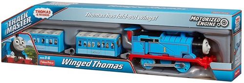 MATTEL Thomas Trackmaster Winged Thomas BMK93 -DVF83 Fisher Price T&F Filmowe lokomotywki pobudzą dziecięcą wyobraźnię i zmotywują do kreowania zabawnych scenek. Seria TrackMaster nawiązuje do bajki „Tomek i Przyjaciele” oraz oferuje pojazdy z niezawodnym napędem. Lokomotywki poruszają się szybciej i pokonują wszelkie wzniesienia. Wystarczy uruchomić przyciskiem mechanizm, aby pociąg wyruszył ku nowej przygodzie. Doskonała konstrukcja sprawia, że pojazdy są bardzo trwałe i odporne na uszkodzenia. Szybkie lokomotywki zachwycą dzieci podczas zabawy. Pojazdy precyzyjnie odwzorowują wygląd bajkowych postaci. Zestawy parowozów z wagonikami serii Thomas & Friends przeniosą dzieci na wyspę Sodor, na której mieszkają zabawne postacie Tomek, Edek, Henio, Gabryś, Kuba, Piotruś, Tobik i Emilka. Zabawa w podróże to przyjemna rozrywka dla dzieci. Zalety: TrackMaster to system torów i kolejek charakteryzujący się nowoczesnym mechanizmem i budową; Bogaty asortyment serii Fisher Price T&F zadowoli miłośników bajki; Pojazdy na baterie bardzo ciekawie prezentują się na torowiskach Fisher Price T&F; Lokomotywy Fisher Price to główni bohaterowie animowanego filmu dla dzieci Tomek i Przyjaciele; Pociągi z napędem doskonale pasują do zestawów torowisk i ciekawych akcesoriów nowej serii. W zestawie: Lokomotywa na baterie; 2 wagoniki. Zabawka dla dziecka: 3 lata + Waga (z opakowaniem): 0,40 kg