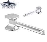 Tłuczek do mięsa firmy PETERHOF. Wysokiej jakości jednolity odlew aluminiowy. Z jednej strony gładki, z drugiej ząbkowany. Ułatwia zmiękczanie mięsa. Rozbite mięso szybciej się marynuje. Przystosowane do mycia w zmywarce. Długość 24,5cm.
