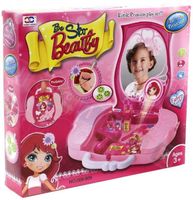 Pojemna, różowa, otwierana walizka na kosmetyki Otwierane komory na akcesoria Duże, bezpieczne lustro Wbudowany projektor do wyświetlana obrazków Zestaw krążków z obrazkami: 18 obrazków Akcesoria: suszarka, grzebień, szminki, lakiery do paznokci, cienie do powiek, pierścionki Zestaw zawiera łącznie 20 elementów