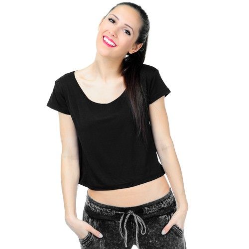Krótki, do pasa top damski z bezszwowym dekoltem.