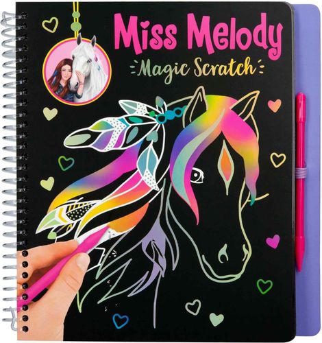 Zestaw kreatywny Magic Scratch Miss Melody, w zestawie 16 stron do samodzielnego kreowania projektów, instrukcja i rysik.