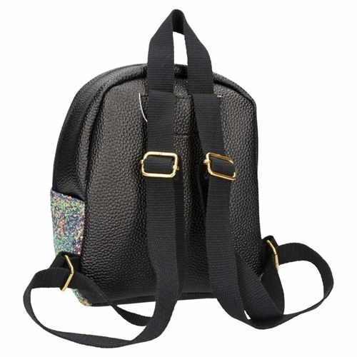 Bardzo modny plecaczek w czarnym kolorze z brokatowym, mieniącym się zdobieniem. Plecak idealnie nadaje się na wycieczkę. Pomieści wszystkie najważniejsze przedmioty. Stanowi także idealne uzupełnienie całego ubioru. Plecak posiada dużą komorę główną z przednią kieszenią i regulowanymi paskami na ramię.