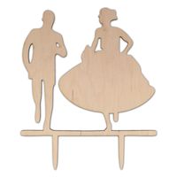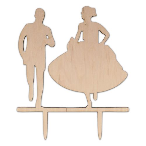 Topper wykonany ze sklejki prezentuje Młodą Parę w radosnym biegu.