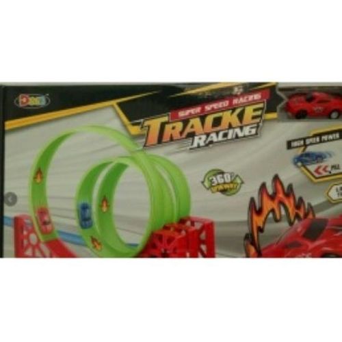 3, 2, 1... START! Wystrzel swój samochód na zielonym torze i pokonaj 3 pętle z rzędu z zawrotną prędkością po torze Track Racing. Duża prędkość drzemiąca w samochodach pozwoli na pokonanie z łatwością pętli i daleki wyskok. Wyskocz jak najdalej, i wygrywaj każdy wyścig! W zestawie oprócz super - szybkiego samochodów, znajdziesz dużą ilość elastycznych torów, które możesz łączyć w różne konfiguracje. Samochody posiadają napęd "pull back", są napędzane przez naciągnięcie a ich nowoczesna konstrukcja pozwala na osiągnięcie zawrotnych prędkości.