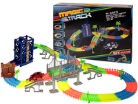 Tor samochodowy + świecący Samochód 211 elementyFluorescencyjny tor samochodowy ze świecącym samochodzikiem zasilanym bateriami