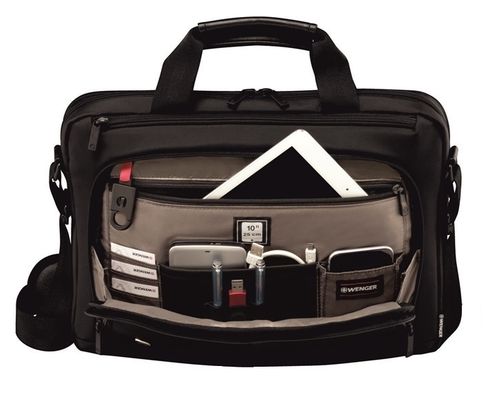 Torba renomowanej, szwajcarskiej marki Wenger przypadnie do gustu wszystkim osobom, dla których liczy się przede wszystkim funkcjonalność i wysoka jakość wykonania. Wyposażona została w kieszeń specjalnie przystosowaną do przechowywania laptopa o przekątnej ekranu do 16" oraz osobną przegrodę, w której bez problemu zmieści się tablet 10". Wzmocniono je dodatkowo materiałem, zapobiegającym zarysowaniu lub uszkodzeniu sprzętu elektronicznego. Model Source gwarantuje przechowywanym wewnątrz urządzeniom całkowite bezpieczeństwo, nawet w trudnych warunkach. Torba marki Wenger posiada także wydzielony przedział na różnego rodzaju dokumenty. Na zewnątrz znajduje się kieszeń Quick Pocket, która umożliwia łatwy i szybki dostęp do wszystkich podręcznych drobiazgów. Zarówno solidnie wykonane, usztywnione uchwyty, jak również miękki, odpinany pasek na ramię z regulacją długości gwarantują użytkownikowi niespotykany komfort noszenia. Co więcej, po rozpięciu zamka błyskawicznego tylnej kieszeni powstaje pasek Pass-Thru, który służy do zamocowania torby Wenger na rączce teleskopowej walizki podróżnej. Takie rozwiązanie sprawia, że podróżowanie nawet z dużym i ciężkim bagażem staje się znacznie przyjemniejsze.