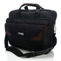 Klasyczna, czarna z elementami brązu torba na laptopa, wykonana z grubego nylonu. Posiada dwie komory zamykane na suwak. W jednej z nich jest usztywniany pokrowiec na laptopa zapinany na rzep. Natomiast w drugiej znajduje się między innymi organizer na długopisy oraz kieszonka na telefon. Rączki obszyte są skórą ekologiczną. Wewnątrz torby podszewka wykonana jest z materiału wodoodpornego. Torba idealna do pracy i na uczelnię.
