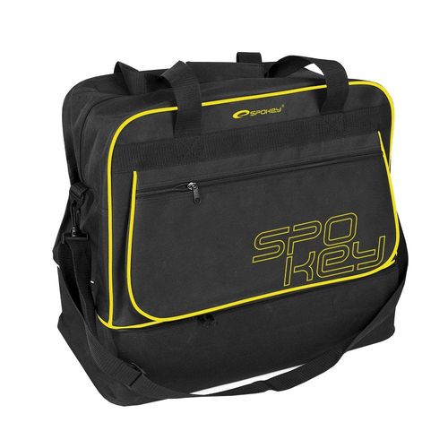 Sportowa torba treningowa firmy Spokey. Posiada dodatkową komorę na składanym stelażu oraz wytrzymały i szeroki pasek. wymiary : 40x30x20cm materiał : Poliester 600D szeroko otwierana komora główna głęboka kieszeń boczna rozkładany stelaż w dolnej kieszeni delikatnie usztywnione dno ze stópkami izolującymi od podłoża uchwyt do noszenia w dłoni łączony opaską na rzep wytrzymały i szeroki pasek do noszenia na ramieniu