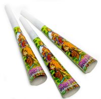 Zestaw zawiera 6 sztuk trąbek z nadrukiem z bajki Scooby Doo i Tajemnicza Spółka. Trąbka ma plastikowy ustnik i papierową tubę. Produkt licencjonowany.