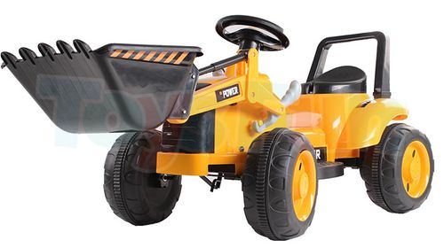 Duży jeździk na akumulator - traktor / spychacz! Traktorek wyposażony jest w silnik o mocy 25W i akumulator żelowy 6V 7aH. Do dyspozycji mamy 2 tryby jazdy i automatyczny hamulec - wystarczy zdjąć nogę z pedału gazu. Pojazd odpalimy za pomocą specjalnego przełącznika. Pojazd posiada szeroki fotel wyprofilowany tak, aby małemu kierowcy było jak najwygodniej. Szerokie koła z gumowymi nakładkami sprawią, że jazda po nierównościach nie będzie problemem, a klakson w kierownicy uatrakcyjni każdą jazdę. Dodatkowo, do każdego pojazdu dodajemy