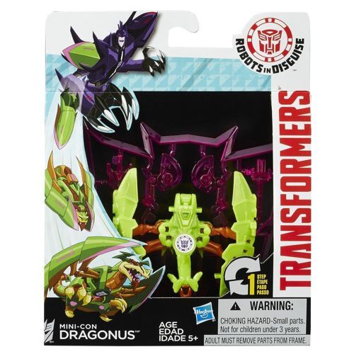 HASBRO Transformers RID B1973 Mini-Con Dragonus B0763 HASBRO B0763 Minicony to nowi bohaterowie kolejnej serii serialu Transformers: Robots in Disguise. Są małe, ale niezwykle potężne. Przed transformacją, wrogowie nawet nie zwrócą na nie uwagi. Jednak wystarczy jeden ruch i zamieniają się w niezawodną broń. Minicony łączą się z większymi Transformersami i stanowią potężny atut w ich rękach. Produkty z serii Minicony pasują do figurek z serii Deployers. Zabawka dla dziecka: 5 lat + Wymiary opakowania: 18,00 x 14,00 x 2,10 cm Waga (z opakowaniem): 0,04 kg