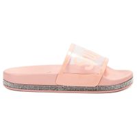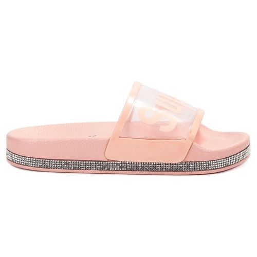 Transparentne, urocze różowe klapki ozdobiono błyszczącymi dżetami. Buty wykonano z wysokiej jakości gumy. Idealnie sprawdza się na plaży, na basenie, a także w miejskiej dżungli. Klapki spodobają się kobietom, które na bieżąco śledzą najnowsze trendy i nie boją się eksperymentować ze swoim wizerunkiem.