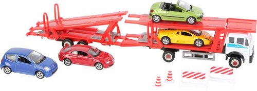 Transporter aut - 10 elementów to zabawka wymarzona dla miłośników pojazdów. Każde dziecko będzie zachwycone mając jedno auto, transporter, przewożące kolejne dziesięć samochodzików. Można ustawiać je na transporterze, bawić się nimi, rozkładać, przekładać, wedle własnego uznania. Z pewnością kolorowe autka to świetna zabawa i sposób na zajęcie dziecka w nudny, deszczowy dzień.