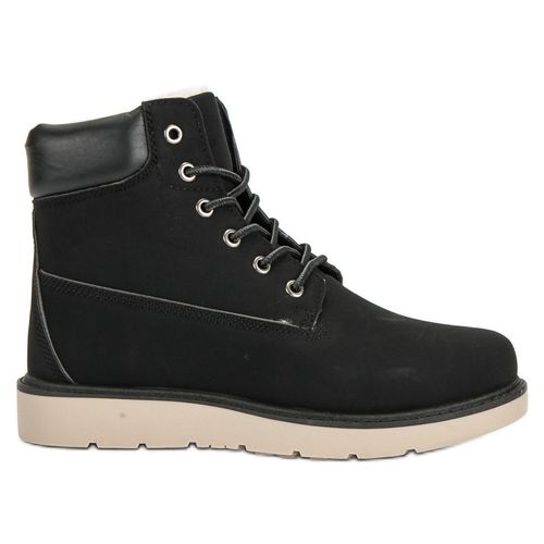 Traperki na platformie Butymodne w kolorze czarnym to casualowe obuwie przeznaczone do użytku na co dzień w sezonie jesienno-zimowym. Wykonano je z wysokiej jakości skóry ekologicznej. Posiadają podeszwę z bieżnikiem z tworzywa sztucznego oraz płaski obcas. Wewnątrz znajduje się wkładka i ocieplenie z ciepłego futerka.