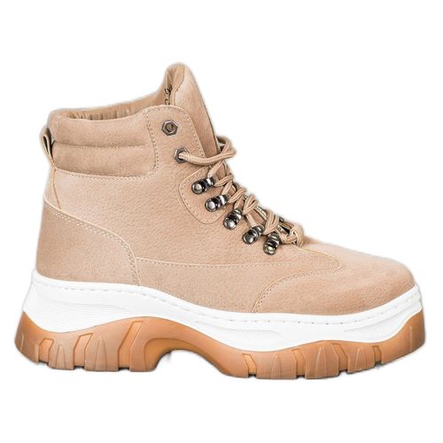 Brązowe traperki za kostkę Seastar to buty damskie na masywnej platformie. Dzięki temu, że jest to obuwie ocieplane, doskonale sprawdzi się w czasie jesieni oraz zimy. Mocne sznurowadła w łatwy sposób pozwolą dopasować buty do stopy, co zwiększy komfort w czasie ich użytkowania. Traperki te posiadają wkładkę ze skóry ekologicznej.