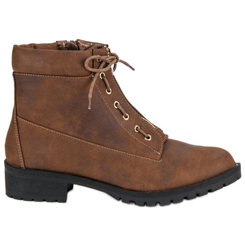 Traperki CM Paris w kolorze brązowym to idealne buty na okres jesienno-zimowy. Posiadają ciekawe sznurowanie boczne oraz ozdobny zamek błyskawiczny na środku. Są bardzo wygodne dzięki grubszej podeszwie, a także niskiemu obcasowi. Pasują do stylizacji codziennych, szczególnie dla kobiet, które lubią buty komfortowe i stylowe.