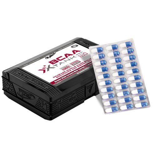 Trening to prawdziwy poligon, na którym musisz walczyć aby przetrwać. Nie ma tu miejsca dla mięczaków! Ogarnia Cię zmęczenie i niemoc? Po wysiłku czujesz się wyczerpany? Spróbuj nowej broni, która wyzwoli w Tobie ukrytą siłę i przyspieszy regenerację mięśni! BCAA X-TANK to niezwykle efektywny preparat, zawierający aminokwasy BCAA w proporcji 2:1:1. Oprócz optymalnych dla organizmu dawek L-leucyny, L-waliny i L-izoleucyny produkt ten został dodatkowo uzbrojony w taurynę, L-tyrozynę i wit. B6. Dzięki temu jeszcze skuteczniej wspomaga produkcję energii w trakcie intensywnych ćwiczeń i hamuje objawy zmęczenia. BCAA X-TANK to także niezwykle skuteczny antykatabolik, zapewniający niezbędną ochronę Twoim mięśniom zarówno podczas treningu jak i przez cały dzień. Zastosowanie technologii KING SIZE umożliwiło załadowanie rekordowej dawki aminokwasów do każdej kapsułki – 1110 mg.