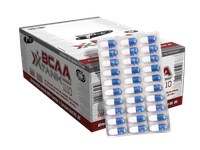 BCAA X-TANK to niezwykle efektywny preparat, zawierający aminokwasy o rozgał��zionych łańcuchach bocznych (L-leucynę, L-izoleucynę i L-walinę) w optymalnej dla organizmu proporcji 2:1:1. Wykazują one silne działanie anaboliczne i stanowią blisko 40% suchej masy mięśniowej. BCAA X-TANK uzupełniono o taurynę, L-tyrozynę i Wit. B6. Dzięki temu skuteczniej wspomaga on procesy energetyczne oraz hamuje objawy zmęczenia i katabolizm białek. BCAA X-TANK polecany jest do codziennego uzupełniania sportowej diety w aminokwasy BCAA niezbędne do wzrostu i regeneracji mięśni. SPOSÓB UŻYCIA Zalecana dzienna porcja do spożycia to 3 kapsułki 2–3 razy dziennie, preparat popić 300 ml wody. W dni treningowe: I porcja rano po przebudzeniu, II porcja 30 min. przed treningiem, III porcja bezpośrednio po treningu. W dni nietreningowe: I porcja rano po przebudzeniu, II porcja pomiędzy posiłkami, III porcja przed snem. Trening to prawdziwy poligon, na którym musisz walczyć aby przetrwać. Nie ma tu miejsca dla mięczaków! Ogarnia Cię zmęczenie i niemoc? Po wysiłku czujesz się wyczerpany? Spróbuj nowej broni, która wyzwoli w Tobie ukrytą siłę i przyspieszy regenerację mięśni! BCAA X-TANK to niezwykle efektywny preparat, zawierający aminokwasy BCAA w proporcji 2:1:1. Oprócz optymalnych dla organizmu dawek L-leucyny, L-waliny i L-izoleucyny produkt ten został dodatkowo uzbrojony w taurynę, L-tyrozynę i wit. B6. Dzięki temu jeszcze skuteczniej wspomaga produkcję energii w trakcie intensywnych ćwiczeń i hamuje objawy zmęczenia. BCAA X-TANK to także niezwykle skuteczny antykatabolik, zapewniający niezbędną ochronę Twoim mięśniom zarówno podczas treningu jak i przez cały dzień. Zastosowanie technologii KING SIZE umożliwiło załadowanie rekordowej dawki aminokwasów do każdej kapsułki – 1110 mg. WALKA O DODATKOWĄ ENERGIĘ Intensywna aktywność fizyczna stanowi dla naszego organizmu ogromne wyzwanie. W jednej chwili musi on zmobilizować wszystkie swoje siły, aby móc stawić czoła coraz to większym obciążeniom treningowym. Wszystko ma jednak swoje granice – gdy wyczerpią się zapasy węglowodanów, nasze ciało szuka innego źródła energii. Aby utrzymać zasilanie dla intensywnie kurczących się włókien mięśniowych przezbraja się ono z szybkiego, nieekonomicznego metabolizmu cukrowców na wydajniejszy, ale za to wolniejszy metabolizm związków tłuszczowych. Niestety wymaga to sporo czasu, a w trakcie naprawdę ciężkiego treningu liczy się przecież każda sekunda. Dlatego uruchamiany jest pośredni sposób produkcji energii – oksydacja aminokwasów. W jego wyniku białka budujące nasze mięśnie rozkładane są przez enzymy kataboliczne do wolnych aminokwasów, które następnie wykorzystywane są jako alternatywne paliwo. W głównej mierze do produkcji energii organizm zużywa aminokwasy o rozgałęzionych łańcuchach bocznych (Branched Chain Aminoacids), które jako jedyne mogą być metabolizowane bezpośrednio w mięśniach z pominięciem wątroby. Ta szczególna właściwość L-leucyny, L-izoleucyny i L-waliny umożliwia podtrzymanie energetyki treningowej, a mięśniom dalszą pracę. BCAA stanowią blisko 1/3 wszystkich aminokwasów budujących nasze mięśnie, dlatego ich spalanie owocuje stopniową redukcją ich masy i może ograniczać nasze postępy treningowe. Możemy się jednak przed tym obronić uzupełniając dietę o dodatkowe źródło aminokwasów rozgałęzionych takie jak BCAA X-TANK. BCAA – NIEZBĘDNE WSPOMAGANIE BCAA to jedne z najważniejszych dla Twoich mięśni aminokwasów! Nie tylko wspomagają proces produkcji energii w czasie ćwiczeń, ale także opóźniają występowanie objawów zmęczenia. Aminokwasy rozgałęzione zabezpieczają mięśnie przed katabolizmem oraz indukują procesy anaboliczne prowadzące do ich wzrostu. To niezbędne składniki budulcowe, które organizm może również dowolnie dostosowywać do swoich potrzeb, przekształcając je w inne aminokwasy. Chociaż BCAA stanowią około 15% wszystkich aminokwasów budujących białka dostarczane w naszym pożywieniu, to jednak do ich wykorzystania niezbędny jest skomplikowany proces trawienia. Co zatem zrobić, aby zaspokoić rosnące zapotrzebowanie na aminokwasy o rozgałęzionych łańcuchach bocznych związane z intensywnym treningiem i zabezpieczyć potrzeby naszych mięśni? Najskuteczniejszym rozwiązaniem będzie ich uzupełnianie w postaci skoncentrowanego suplementu. Tak podane aminokwasy BCAA wchłaniają się błyskawicznie i już po kilku minutach docierają za pośrednictwem krwioobiegu do naszych mięśni, czyli do miejsca swojego działania. TAJNA BROŃ DLA TWOICH MIĘŚNI Liczne badania naukowe potwierdzają korzyści płynące ze stosowania produktów zawierających wolne aminokwasy BCAA. Czy można jeszcze bardziej wzmocnić ich działanie? Tak! Eksperci TREC NUTRITION opracowali zupełnie nowy preparat, który działa jeszcze silniej niż same aminokwasy rozgałęzione. To zupełnie nowa broń w walce o potężne mięśnie i maksymalną wydolność treningową. BCAA X-TANK to unikalne połączenie doskonałych proporcji L-leucyny, L-izoleucyny i L-waliny (2:1:1) oraz tauryny i L-tyrozyny z dodatkiem wit. B6. Dzięki temu BCAA X-TANK jeszcze skuteczniej wspomaga metabolizm wysiłkowy, zabezpieczając potrzeby energetyczne komórek mięśniowych, dzięki czemu mogą one pracować jeszcze dłużej i jeszcze intensywniej. Formuła preparatu zawiera najwyższej jakości wolne aminokwasy, które błyskawicznie docierają do krwioobiegu. Wysoki poziom BCAA w czasie ćwiczeń hamuje uwalnianie tryptofanu i proces przekształcania go w serotoninę odpowiedzialną za odczuwanie zmęczenia. Dodatek tauryny i tyrozyny, które wykorzystywane są m.in. do biosyntezy neuroprzekaźników, dodatkowo wzmacnia ten efekt. To dlatego BCAA X-TANK silniej niż klasyczne formuły BCAA zwiększa koncentrację i motywację d