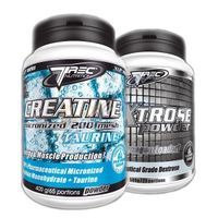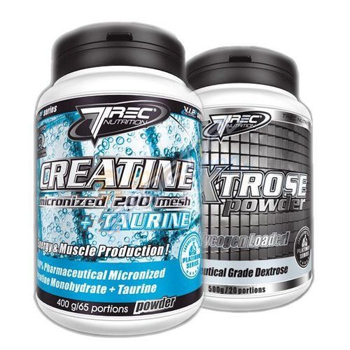 Kreatyna przeznaczona jest dla sportowców dyscyplin siłowych, szybkościowo-siłowych i wytrzymałościowo-siłowych. Kreatyna jest suplementem wspomagającym przyrost siły oraz zwiększającym masę mięśniową (działanie anaboliczne). Pośrednio wpływa również na przyśpieszenie regeneracji organizmu poprzez poprawienie równowagi azotowej oraz opóźnienie redukcji białek (działanie antykataboliczne). Dzięki właściwemu zastosowaniu można w przeciągu kilku tygodni osiągnąć 10-20 procentowy przyrost siły oraz uzyskać od 3 do 5kg beztłuszczowej masy mięśniowej. Poprzez suplementację kreatyny zwiększa się jej stężenie w mięśniu o ok. 50%. Zapoczątkowuje to szereg reakcji, które powodują, iż komórki mięśniowe wchłaniają więcej wody (1g kreatyny wiąże około 50g wody). Zwiększona objętość komórki wywołuje zmiany napięcia wewnątrzkomórkowego, co organizm odbiera jako sygnał anaboliczny, tym samym pobudzając mięśnie do przyrostu. Preparat został dodatkowo wzbogacony o taurynę, która wpływa pobudzająco na organizm oraz uczestniczy w procesach produkcji energii. Tauryna jest aminokwasem niezbędnym w przemianach białkowych. Organizm wytwarza niewielkie ilości tauryny. Tauryna, podobnie jak glutamina magazynuje azot w organizmie, zmniejsza tempo rozpadu białek - wykazuje działanie antykataboliczne, wykazuje podobny do insuliny wpływ na metabolizm węglowodanów - zmniejsza stężenie cukru we krwi. W celu osiągnięcia trwałych efektów kreatynę najlepiej łączyć w jednym cyklu z: odżywką białkową, węglowodanowo - białkową, glutaminą, HMB lub aminokwasami. Kreatyna mikrorozdrobniona 200 mesh firmy Trec Nutrition wyprodukowana jest przez największego producenta kreatyny na świecie amerykańskie laboratorium Ferro Pfanstiehl. Kreatyna ta charakteryzuje się najwyższą czystością i wchłanialnością dzięki czemu otrzymała certyfikat jakości farmaceutycznej. Co to jest dekstroza ? Dekstroza to węglowodan zwiększający wydzielanie hormonu anabolicznego insuliny, który potęgującego wchłanianie kreatyny oraz aminokwasów. Jak działa dekstroza ? Dekstroza jest węglowodanem zwiększającym bilans energetyczny organizmu. Wpływa to na zwiększenie zasobów energii organizmu przez co podwyższa się wydolność i wytrzymałość treningową. Stosowanie dekstrozy powoduje zwiększone wydzielanie hormonu anabolicznego - insuliny, która ułatwia transport kreatyny oraz aminokwasów do komórek mięśniowych. Dodatkowe zażywanie kreatyny z dekstrozą powoduje wzrost stężenia kreatyny we krwi nawet o 50%. Sposób użycia (kreatyna): Preparat należy stosować 2 x dziennie po jednej porcji ( 6,5 g). W dni treningowe: Pierwszą porcję należy przyjąć 30 min przed treningiem, drugą porcję bezpośrednio po treningu. W dni nietreningowe: Pierwszą porcje 15 min przed śniadaniem, drugą 15 min przed kolacją. Porcje kreatyny najlepiej przyjmować rozpuszczając ją w wodzie lub soku (w ok. 250 ml). Preparat najlepiej łączyć w jednej porcji z dekstrozą (ok.30g).