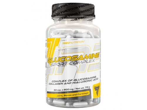 SIARCZAN GLUKOZAMINY + HYDROLIZAT KOLAGENU + KWAS HIALURONOWY. Kompozycja glukozaminy, kolagenu i kwasu hialuronowego – składników, które tworzą elementy strukturalne chrząstek stawowych, więzadeł i ścięgien. GLUCOSAMINE SPORT COMPLEX polecany jest osobom narażonym na zwiększone obciążenia stawów, szczególnie sportowcom dyscyplin tj. gry zespołowe, lekkoatletyka, kolarstwo oraz sporty siłowe. Porcja produktu zalecana do spożycia w ciągu dnia to 3 kapsułki.