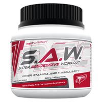 Chcesz aby Twoje mięśnie były większe i mocniejsze, a ruchy szybsze, silniejsze i bardziej precyzyjne? Chcesz oko w oko stanąć ze swoimi słabościami i maksymalnie wykorzystać tkwiący w twoim organizmie potencjał? Wypróbuj S.A.W. – najsilniejszy stack przedtreningowy jaki kiedykolwiek powstał w laboratoriach TREC NUTRITION. Wyostrz swoje zmysły! Poczuj niesamowity przypływ energii i otwórz się na zupełnie nowe doznania treningowe. Od teraz Twój mózg uzyska absolutną kontrolę nad pracą mięśni! Przenieś swoje ćwiczenia na najwyższy poziom intensywności, o którym wcześniej nawet nie myślałeś. Zamień zwykły trening na SUPER ANABOLIC WORKOUT!