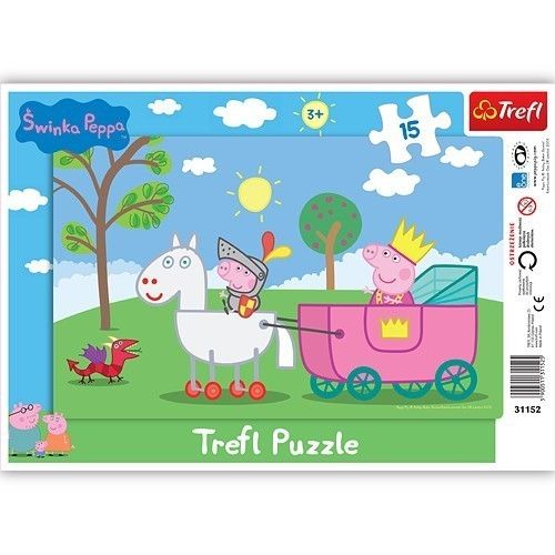 Pomysłowe puzzle dla młodszych dzieci z wesołą grafiką ze Świnką Peppą. Układanka zawiera 15 elementów umieszczonych w ozdobnej, spójnej graficznie ramce, tworzącej z obrazkiem bardzo ładną całość. Dodatkowo ramka ułatwia młodszym dzieciom ułożenie obrazka i pozwala na bezpieczne przenoszenie układanki, dzięki czemu swobodnie ozdobimy nią pokój. Wyraziste kolory i prosty wzór są idealnie dostosowane do wieku i umiejętności dziecka. Po ułożeniu powstanie piękny obrazek przedstawiający Świnkę Peppę w zbroi rycerza na koniu, który ciągnie różową karetę.Puzzle przyjazne dziecku!Do produkcji Puzzli Ramkowych, dedykowanych młodszym dzieciom, użyliśmy materiałów ekologicznych i płótnowanego papieru eliminującego odbijanie światła, co gwarantuje bezpieczeństwo i radość zabawy.Wiekod 3 latWymiaryObrazek 32,8x22,8 cm, op. 33x22,8x4 cmSkala15 EL