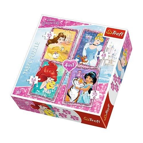 Nie jedna, nie dwie, ale aż cztery układanki dla dziewczynek zamknięte w jednym pudełku to prawdziwa gratka dla miłośników puzzli! Po ułożeniu otrzymamy cztery obrazki różnej wielkości z pięknymi Księżniczkami Disneya i ich przyjaciółmi. Zestaw doskonale spełnia oczekiwania rodzeństwa - każdy ułoży swój ulubiony obrazek nawet w tym samym czasie. Zróżnicowana liczba elementów pozwala na zabawę zarówno młodszym, jak i nieco starszym dzieciom. Dodatkowym urozmaiceniem zabawy może być układanie na czas, porównywanie obrazków, szukanie różnic i podobieństw. Piękna grafika z serii Disney Princess i możliwość wspólnego tworzenia to powody, dla których dzieci uwielbiają układać puzzle.Puzzle przyjazne dziecku! Do produkcji puzzli użyto materiałów ekologicznych i płótnowanego papieru eliminującego odbijanie światła, co gwarantuje bezpieczeństwo i radość zabawy.Zawartość pudełka:- 1 układanka 70 elementów- 1 układanka 54 elementy- 1 układanka 48 elementów- 1 układanka 35 elementówWiekod 4 latWymiaryop. 28x6,2x28 cmSkala35, 48, 54, 70 EL