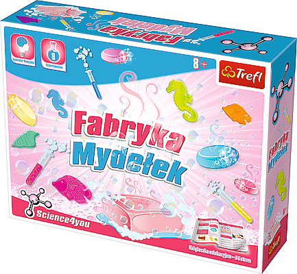 TREFL Fabryka Mydełek 8 eksperymentów Przygotuj kolorowe, pachnące mydełka w kształcie muszelki, rybki i konika morskiego. Dodaj do nich aromaty oraz brokat, tworząc swoją własną, niepowtarzalną kompozycję! Własnoręcznie wykonane mydełko zawiń w celofan i ozdób dołączoną do zestawu tasiemką. Piękny, samodzielnie wykonany prezent jest już gotowy! Wiek: 8+