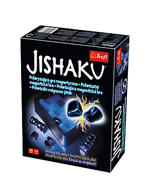 Jishaku. Polaryzująca gra magnetyczna dla miłośników udanych spotkań z grami towarzyskimi. Jishaku to zaskakująca propozycja, która zapewni wyśmienitą zabawę i dużą dawkę śmiechu, a dzięki 4 wariantom rozgrywki możesz zabrać ją na każde spotkanie z przyjaciółmi, bez obaw, że się znudzi. Jishaku to także świetny sposób na relaks w pojedynkę. Warto je trzymać pod biurkiem, na wypadek ataku stresu bądź.... nudy! Weź do ręki polaryzujące kamienie Jishaku i sprawdź, czy masz moc! Jishaku to gra, w której zmierzą się potężne siły – stań do walki z przeciwnikami i polaryzującą mocą czarnego hematytu, wykorzystując swoje supermoce: strategię i spryt. Sprawdź, jak Jishaku Cię przyciągnie! Tylko czujność i taktyka pozwolą kontrolować nieprzewidywalną moc magnesów – Twoim zadaniem jest ułożenie ich tak, żeby bieguny pola magnetycznego się odpychały. Pamiętaj, że kamienie będą na siebie oddziaływać, a pozostali gracze mają dokładnie ten sam cel co Ty! W tej grze każdy ruch decyduje o tym, kto może zostać zwycięzcą, a kogo pokona magnetyczna siła. Gracze posługują się 18 magnesami z hematytu, znanego wśród starożytnych Rzymian i Egipcjan z właściwości odpędzających choroby i przynoszących szczęście. Te magnetyczne kamienie, schowane w eleganckim czarnym woreczku mają zapewnić równowagę umysłu, ciała i ducha. Wygodne pudełko – plansza! 4 Warianty rozgrywki: Pierwszy - Układaj magnesy tak, żeby nie przyciągały kamieni leżących w polu gry. Gracz, który jako pierwszy pozbędzie się swoich kamieni, wygrywa. Eliminacja - W tej rozgrywce liczą się punkty – wszystkie złączone kamienie są punktowane. Gracz, który przyciągnie magnesy dające 10 punktów, przegrywa. Porywacz - Twój kamień to porywacz, który musi przyciągnąć jak najwięcej jeńców przeciwników. Wszystkie magnesy będą pojmane – zdobądź ich najwięcej! Samotnik - Wariant dla 1 gracza, w którym przeciwnikiem jest polaryzująca siła. Ułóż w polu gry 18 magnesów tak, żeby nie przyciągnęły się wzajemnie. Brzmi banalnie ? Spróbuj się zmierzyć z tym wyzwaniem…