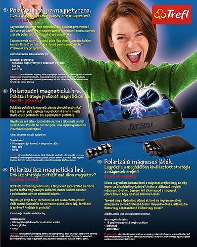 Tylko czujność i taktyka pozwolą kontrolować nieprzewidywalną moc magnesów – Twoim zadaniem jest ułożenie ich tak, żeby bieguny pola magnetycznego się odpychały. Pamiętaj, że kamienie będą na siebie oddziaływać, a pozostali gracze mają dokładnie ten sam cel co Ty! W tej grze każdy ruch decyduje o tym, kto może zostać zwycięzcą, a kogo pokona magnetyczna siła. Gracze posługują się 18 magnesami z hematytu, znanego wśród starożytnych Rzymian i Egipcjan z właściwości odpędzających choroby i przynoszących szczęście. Te magnetyczne kamienie, schowane w eleganckim czarnym woreczku mają zapewnić równowagę umysłu, ciała i ducha.