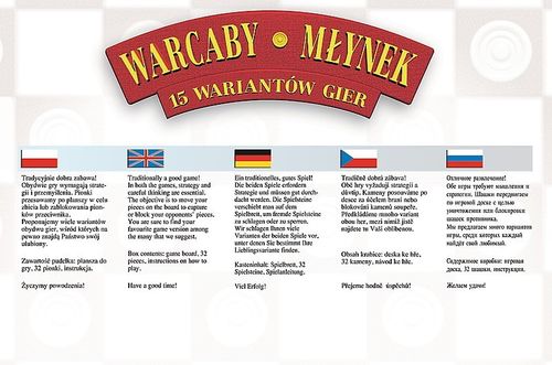 Klasyka gier w dobrym wykonaniu. Warcaby i Młynek to nowe propozycje gier dla dwóch osób z wykorzystaniem tradycyjnych, dobrze znanych plansz. 15 nowych wariantów rozegrania partii Warcabów i Młynka daje graczom wiele możliwości wykorzystania nowych strategii i doskonałą okazję do treningu logicznego myślenia. Dzięki takiemu rozwiązaniu gracze za każdym razem mogą sprawdzić swoje umiejętności w innych kombinacjach, testować strategie i szukać nieszablonowych rozwiązań. Celem jest takie ustawienie pionków na planszy, żeby zablokować lub zbić pionki przeciwnika. Gra Warcaby i Młynek to połączenie dobrej zabawy z ćwiczeniami pamięci i logicznego myślenia. Duże pionki i płótnowana wytrzymała plansza zapewniają swobodną rozgrywkę zaróno przy ostrym, jak i przytłumionym świetle.