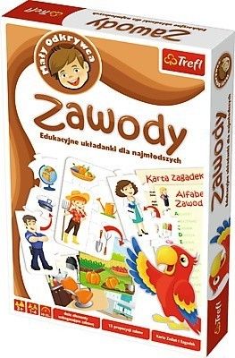 Zawody - Edukacyjna układanka dla najmłodszychZawody to układanka edukacyjna, dzięki której dzieci zapoznają się z pracą ludzi na różnych stanowiskach oraz ich narzędziami pracy. Bawiąc się dzieci wzbogacają słownictwo związane z zawodami, ćwiczą umiejętności wypowiadania się na określony temat, rozbudzają ciekawość poznawczą, a także rozwijają pamięć wzrokową i sprawność manualną.Produkt dostarcza wielu pomysłów na zabawę dziecko ma możliwość zabawy w pojedynkę i w grupie rówieśników. Do gry dołączone są scenariusze i propozycje do wykorzystania przez rodziców.Opakowanie zawiera 12 planszetek z wizerunkami przedstawicieli różnych zawodów oraz 36 puzzlowych klocków przedstawiających narzędzia pracy, planszetki z obrazami miejsc pracy, Kartę Zadań i Zagadek oraz instrukcję z wieloma propozycjami zabaw.Duże elementy z grubej tektury są pokryte wysokiej jakości farbami, co gwarantuje bezpieczną zabawę nawet dla małych dzieci. Wyraźne rysunki i żywe kolory dopasowane są do stopnia rozwoju dziecka.Seria Mały Odkrywca to gry edukacyjne dla dzieci w wieku od 2 do 6 lat. Wszystkie pozycje zostały opracowane przez zespół specjalistów z różnych dziedzin: pedagogiki, filologii, logopedii, socjologii oraz psychologii. Każda z gier została przygotowana, by wspomagać rozwój poznawczy i intelektualny dziecka: rozwija myślenie logiczno-matematyczne, stymuluje rozwój słownictwa i zdolności komunikacyjne, ćwiczy koordynację wzrokowo-ruchową, trenuje pamięć i koncentrację, pobudza wyobraźnię oraz kreatywność. Nasze produkty to połączenie zabawy z elementami edukacyjnymi, a jednocześnie twórcze pomysły na spędzenie czasu z dzieckiem.Produkty z serii Mały Odkrywca są testowane przez dzieci oraz pozytywnie opiniowane przez nauczycieli przedszkolnych.Wiekod 3 latWymiaryop. 28,8x19,3x4,1 cm