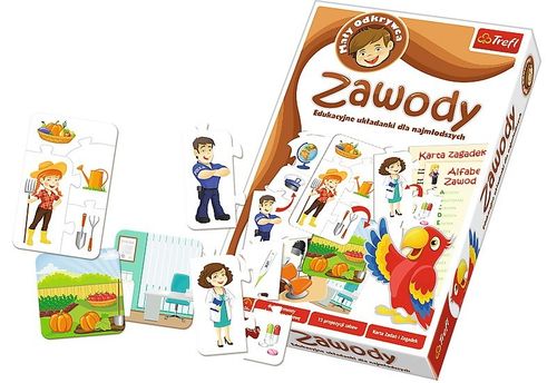 Zawody to układanka edukacyjna, dzięki której dzieci zapoznają się z pracą ludzi na różnych stanowiskach oraz ich narzędziami pracy. Bawiąc się dzieci wzbogacają słownictwo związane z zawodami, ćwiczą umiejętności wypowiadania się na określony temat, rozbudzają ciekawość poznawczą, a także rozwijają pamięć wzrokową i sprawność manualną.